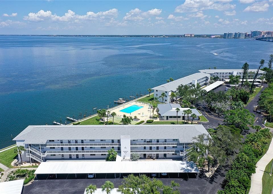 Direct Waterfront, newly updated 2 bedroom 2 bath end unit with hurricane resistant windows and sliders. Sarasota Harbor East, a premier 55+ maintenance-free community in one of the most desirable bayfront locations in Sarasota! Just minutes from downtown Sarasota, St. Armands Circle, Lido Beach, and directly across from the Sarasota Yacht Club, this community offers an unmatched combination of convenience, charm, and waterfront living. This residence features a fully glass-enclosed lanai—perfect for soaking in the spectacular waterfront views. The unit also comes with a covered parking space plus ample guest parking. Community highlights include: Free boat docks for sailboats or powerboats up to 30’ (first-come, first-serve), heated waterfront pool with stunning bay views, community gas grill and picnic area, secured covered bicycle shed & kayak storage, individual storage bins for residents. With its unbeatable location, Sarasota Harbor East is a rare opportunity to own in one of Sarasota’s most sought-after waterfront communities.