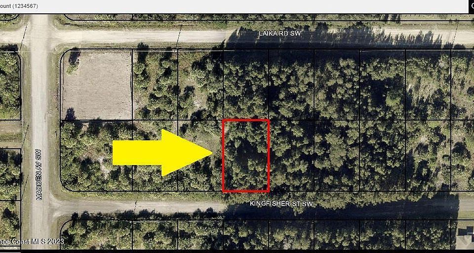 It'a a 0.23 acre single family residential lot [Rs2 Zoning] available in Port Malabar Unit #49 of Palm Bay. Located in the buildable section of Palm Bay, this property is just 4.1 miles -12 minutes to Publix Shopping, 2.1 miles -6 minutes- to Westside Elementary School, and 2.6 miles -7 minutes- to Bayside High School. Property measures 126 feet on the northern boundary and 125 feet on the western boundary.From Exit #173 of I-95 go west on Malabar Road for 1.4 miles. Turn left on Emerson Drive SE and Right on Jupiter Boulevard. Proceed for 1.6 miles and turn left on DeGroodt Road. Proceed 3.3 miles. turn right on Osmosis Drive. Proceed 1 miles and turn left on Madden Avenue SW and Left on Kingfisher Street. The lot will be on the left.Owner will only consider (a) a full price offer, and (b) a closing AFTER 01/02/2026 (this is for tax purposes).