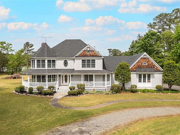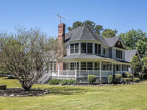 Fall in love with this ready to renovate, four-bedroom, three-and-a-half bathroom custom-built home offering 3,048 sq ft. This victorian home features waterfront, with over 3 acres of land, a detached three-car garage with second-story storage, pier, and room to grow. Interior features include beautiful hardwood floors, an open concept kitchen and living area with a gas fireplace, and windows that provide breathtaking views. The first-floor primary bedroom with an attached en-suite is complete with dual closets and jetted tub. The second floor boasts three additional bedrooms, an office, and a spacious finished room over the two-car garage perfect for family game night. Other features include a front wrap-around and back porch perfect for entertaining. Take the opportunity to make this home your own. Just minutes away from Gloucester Courthouse, the private drive, tranquil setting, and waterfront acreage make for a winning combination in this lovely Matthews home. Home is as-is.