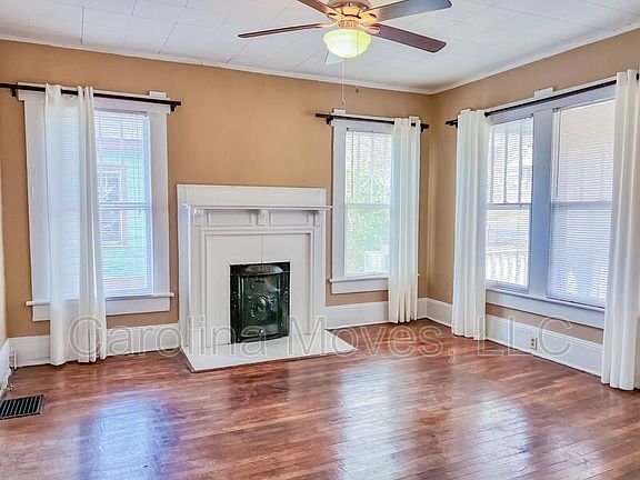 Welcome to this charming 3-bedroom, 1.5-bathroom house located in the heart of Spartanburg, SC. As you approach the property, you'll be greeted by a delightful rocking chair covered front porch, perfect for enjoying the pleasant Southern weather. Step inside and you'll be captivated by the beautiful hardwood flooring that flows throughout the home, adding a touch of elegance to the space. The large living room, complete with a cosmetic fireplace, provides a cozy atmosphere for relaxation or entertaining guests. Adjacent to the living room, you'll find a formal dining room, ideal for hosting dinner parties or enjoying family meals. The well-equipped kitchen features a refrigerator, stove, and even a washer and dryer for your convenience. Additionally, there is a half bath conveniently located off the kitchen. The bedrooms in this house are spacious, offering plenty of room for your personal retreat. The front bedroom boasts another cosmetic fireplace, adding a touch of character to the space. Step outside onto the large back deck, where you can unwind and enjoy the peacefulness of the fenced-in yard. Whether you're looking to relax on the porch, entertain in the spacious living areas, or enjoy the privacy of the fenced yard, this house offers a wonderful place to call home.