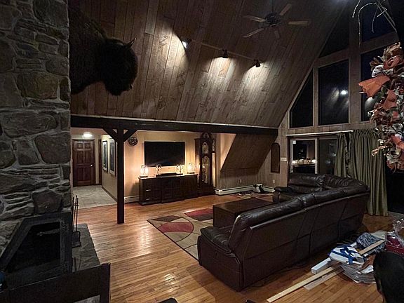 Modern chalet style home on West Mountain. This updated home features a new kitchen, a vaulted ceiling living room with a stone fireplace, hardwood floors, a large deck, an over sized two car garage, on demand tankless hot water, a loft- ideal for a home office, a finished lower level with potential 4th bedroom, private well, ample off-street parking & so much more..