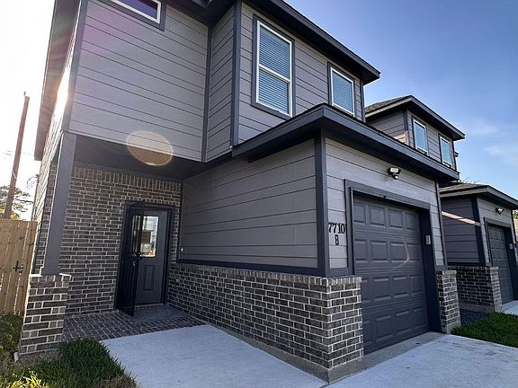 Welcome to 7710 Darnay Dr Unit B a stunning brand-new duplex nestled in the vibrant heart of Houston. This newly constructed home offers a perfect blend of style, comfort, and functionality. Step inside to discover a modern open-concept layout, filled with natural light and finished with elegant wood-look tile flooring throughout the main areas. The gourmet kitchen is a true centerpiece, featuring granite countertops, contemporary cabinetry, and plenty of space for both cooking and entertaining. Upstairs, enjoy the comfort of plush carpeted bedrooms, including a spacious primary suite complete with a private ensuite bathroom and walk-in closet. Each bathroom is designed with oversized gray-tiled showers, adding a luxurious feel to your daily routine. Additional features include a private fenced backyard and an attached garage for secure parking and storage. Don't miss your chance to call this sophisticated new build your home schedule a tour today!