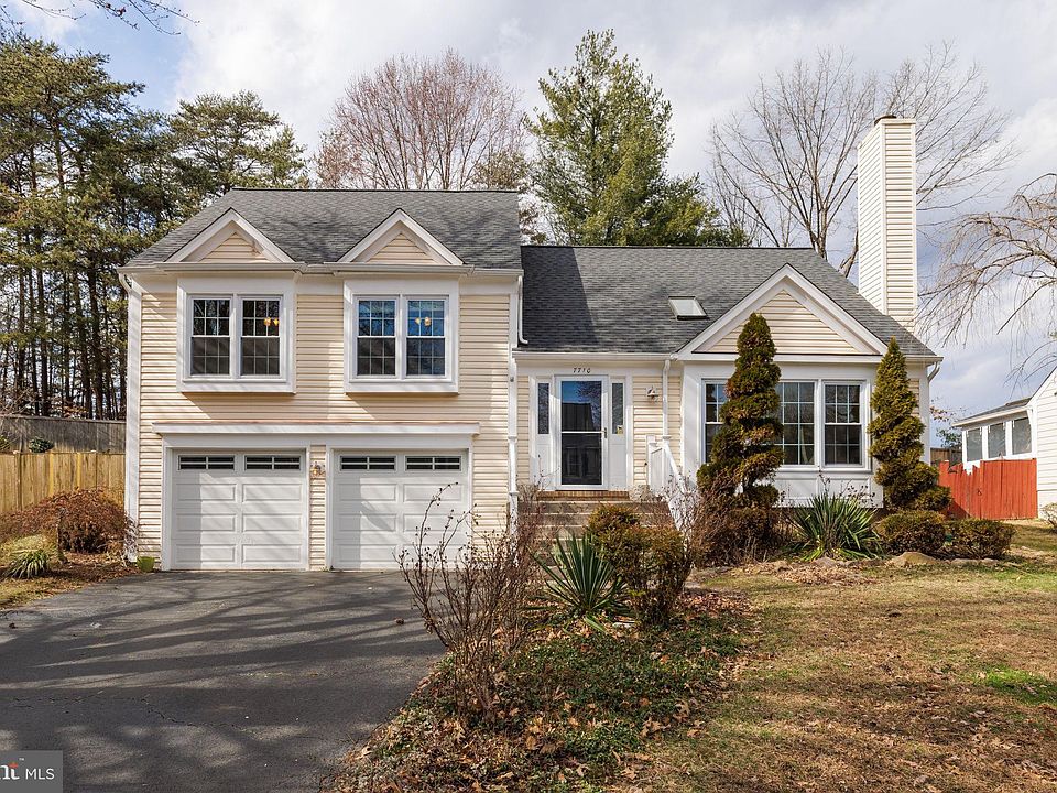 Welcome to 7710 Green Garland Drive, an outstanding Revere model in Springfield's desirable Afton Glen. This split-level has beautiful curb appeal, a spacious 2 car garage, and hardwood floors throughout. Walk into the family room with its soaring vaulted ceilings, 2 skylights, and an inviting fireplace. The kitchen features stainless appliances, granite countertops, glass-tile backsplash, large bay window, and a center island with bar stool seating. Step out from the dining room to the huge deck and fully fenced rear grounds - the perfect space for outdoor entertainment! The owner's bedroom has tons of natural light, a ceiling fan, and a walk-in closet with custom shelving and a stylish chandelier. The owner's bath has a sliding barn door, a nice vanity, and modern track lighting. There are also 2 other bedrooms and a tastefully updated bath on that level. The lower level features the fourth bedroom, a nicely renovated full bath, and the laundry room. This property is in a great location close to commuter routes, shopping, Metro, and much more!