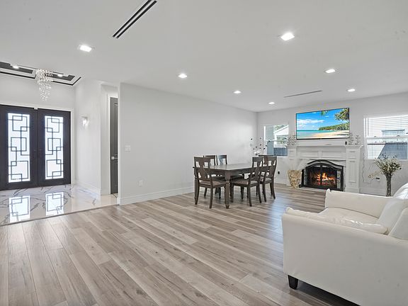 This beautiful 3-bedroom, 3-bathroom home is located in the desirable Lake Balboa neighborhood! With an appealing front yard, this home offers 2,050 sqft of living space on a spacious 7,964 sqft lot. Inside, a welcoming entryway leads to the formal dining and living rooms, featuring high ceilings, recessed lights and a cozy fireplace. The chef's kitchen is equipped with a large center island, quartz countertops, shaker cabinets, and stainless-steel appliances, all opening seamlessly to a dining area. The open living and dining area provide plenty of room for gatherings and entertainment. The home includes two primary bedrooms, each with updated ensuite bathrooms, along with an additional bedroom that shares a hallway bathroom. Outside, you'll discover a private backyard with mature trees, a grassy area and plenty of space for relaxation and family gatherings. Owner pays for gardener. Renter is responsible for all the utilities.