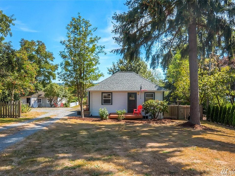 TWO Cottages on one lot. Main house is a 2 bed 1 bath w private fenced yard & basement for storage,additional living space or workshop. Additional 1 bed - 1 bath has full kitchen, living area, bedroom &full bath. Fresh paint & floors in both. Each home has updated electrical & plumbing. Larger lot/yard w mature trees. RV Parking. Ebey slough & territorial view. Endless opportunity awaits! Tiny house,Duplex, Condo, MIL alternative. A short commute & just minutes to shopping & dining.