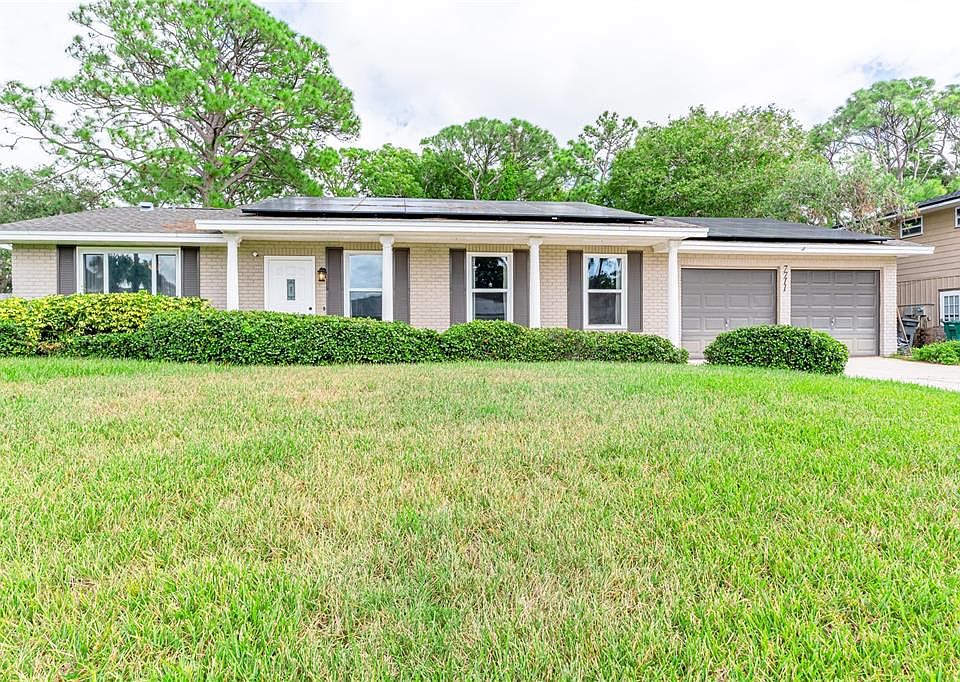 This recently renovated 4 BEDROOM, SPLIT FLOOR PLAN, 2 BATH POOL HOME features over $100k in RECENT UPDATES, and sits on a generous .26 ACRE LOT! THE SOLAR SYSTEM (2018) reduces your power bill to an average of $40.00 a month, panels included in purchase price. The covered front patio welcomes you into this modern, spacious open floor plan home. Immediately as you enter you will notice the openness of the floor plan, the NEWLY INSTALLED LUXURY VINYL FLOORS, which makes this the perfect home for entertaining. The FAMILY ROOM has French Doors that open to enormous backyard with lush landscaping. The concrete pool RESURFACED with PEBBLE TEC, features a NEW TRAVITINE POOL DECK surrounding the pool, with a completely fenced in backyard. The covered-screened in lanai overlooking the pool, provides shade and the perfect place for that morning cup of coffee or to unwind in the evening. Master Suite will accommodate most any bedroom set , 14x20. Master Bath recently updated (2025) with a sleek modern designer vanity. Second bedroom is also oversized (12x17) and could easily be used as a second master bedroom. The eat in Kitchen is open to the family room, NEWER STAINLESS STEEL RANGE, REFRIGERATOR + MICROWAVE. INSIDE LAUNDRY, WASHER + DRYER 2022 transfer with the sale. So many extra features...TANKLESS WATER HEATER, TOTAL HOME FILTRATION SYSTEM, 3 CAMERA SECURITY SYSTEM OUTSIDE, INTERIOR ALARM SYSTEM WITH CAMERA, ROOF 2018, AC 2022, MANY NEW WINDOWS 2021 just to name a few. NO FLOOD ZONE, NO HOA, LOCATED ON A CUL DE SAC STREET. This home has been meticulously kept + offers the PERFECT FLORIDA LIFESTYLE. SEMINOLE CENTER + AWARD WINNING BEACHES 5 MINUTES AWAY. This beautiful home in move in ready, it combines comfort + style. Make your appointment today!