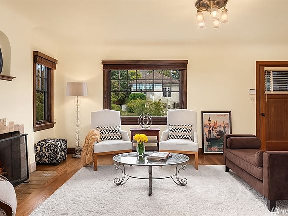 Picturesque study of Bungalow charm. Brilliant kitchen pairings - White cabinets against black granite; subway tiles. Hardwood floors ~ woodburning fireplace, main level. Sun light, moon, stars, ultra garden corners. Highly adaptable Community! Walk-score ~ near the top! Charm ~ spilling over! Floor-plan ~ it fits you! Reborn in 2007. A generational beauty! Zip code of convenience: zoo, Greenlake, public transp, uptown downtown. All stages, ages of running, walking. Olympic Mt. kitchen view.