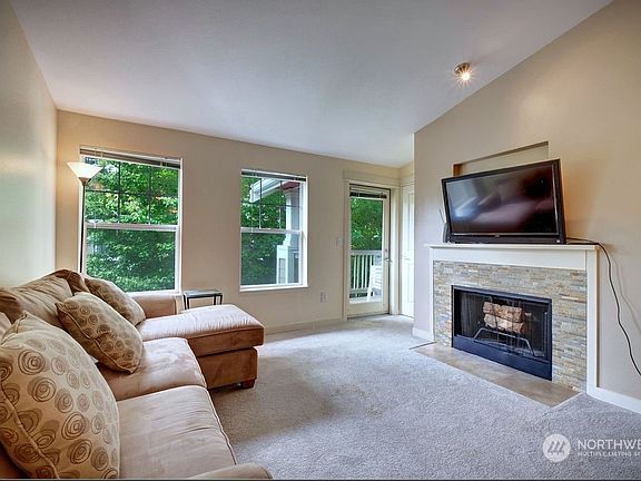 Enjoy this well maintained top floor 3 Bedroom/2 bath end unit in the sought after Trail Walk Community in the heart of Kenmore. This inviting home has an open concept design featuring a modern kitchen, dining area and living room with vaulted ceilings and wood fireplace. Enjoy the luxurious amenities of an impressive clubhouse complete with a hot tub, pool and gym. The convenience of an elevator from secure parking to the 3rd floor is a bonus. The primary bedroom offers a large walk-in closet with en suite bath and deck. Its great location is adjacent to the Burke Gilman Trail, close to parks, transit, restaurants, shopping, golf courses, Lake Washington, and much more! Pet friendly too!