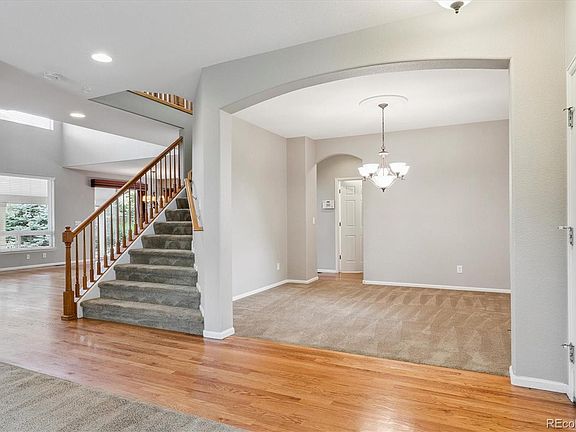 Opportunity knocks! New lower price! Make this home truly yours and find yourself in a sought-after, peaceful, quiet location in Castle Rock, but just 25 minutes to the Denver Tech Center! From the moment you step inside, you’ll find an open and inviting layout designed for both everyday living and memorable entertaining. The main level features formal living and dining rooms, an open kitchen and family room, and a main floor study or bedroom with a full bath, ideal for guests or multi-generational living. The heart of the home is the gourmet kitchen, complete with double ovens, a gas cooktop, slab granite counters, stainless steel appliances, and an oversized island with an eat-up bar. A huge walk-in pantry provides exceptional storage, while high ceilings and hardwood floors add spaciousness and elegance. Upstairs, the expansive primary suite offers a spa-like retreat with a custom walk-in closet, dual vanities, and a large soaking tub with a separate shower. Separated by the bridge walkway, three additional bedrooms and a full bath complete the upper level, providing plenty of space for family or guests. Step outside to your private backyard oasis, featuring a large, covered patio with upgraded stamped concrete, lush landscaping, a garden area, and a peaceful water feature, perfect for enjoying Colorado evenings year-round. While inside, the 2-zone HVAC provides comfort on any level, in any season. The yard also includes unique touches that make this property truly stand out. With 5 bedrooms and 3 full baths, this home offers flexibility for today’s modern lifestyle. Located in a sought-after Sapphire Pointe, residents enjoy community amenities including a pool, playground, tennis courts, and trails. With easy access to major highways and just minutes from downtown Castle Rock for your dining, shopping, and outdoor adventures. A must-see and a best value combining great spaces, style in a peaceful, quiet location!