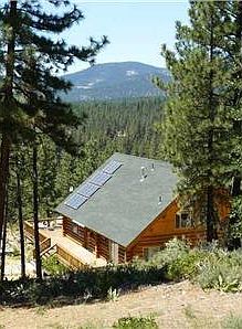 LOG HOME SITUATED ON ALMOST 5 ACRES AND OFF THE GRID....LIVE EFFICIENTLY, PRIVATELY AND ONE WITH NATURE! This 2648 square foot log home offers 2 bedrooms plus loft, million dollar views of mountain peaks to the west and pond with waterfall. The home is solar powered with backup 10 KW generator, 3 cyl diesel. Hickory floors, tile in bathroom and kitchen, granite tile kitchen counters, claw foot bathtub with separate shower stall, custom bathroom sink plus On Demand propane hot water heater.