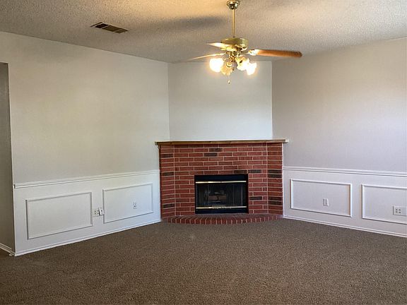 Wood burning stoveSplit bedroom floorplanNew carpetCovered back patioLots of storagePrimary suiteWalk in shower