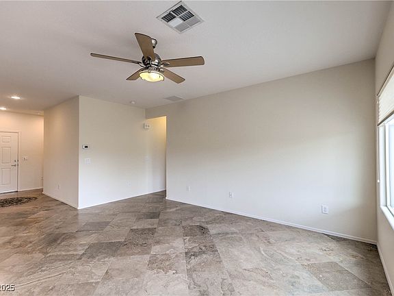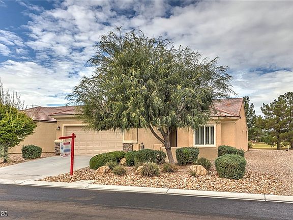 Move in ready home located on the Golf Course of Sun City Aliante. This 2-bedroom, 2-bath home features a great floorplan with a den/office, lighted ceiling fans, window shutters in most rooms, and recessed lighting throughout. The spacious primary bedroom has diagonally laid blonde hardwood flooring, a large walk-in closet, crown molding with decorative soft lighting, an oversized shower, and double sinks. Terrazzo flooring is in the common areas. A very nice kitchen with an R/O sys, granite counters that overlook the dining area and living room. The dining area leads to a beautiful backyard with a covered patio and amazing views of the golf course. A separate laundry room is located to the garage. New 15 Seer A/C installed May 2024 with a 10-year all parts warranty. Aliante highlights: swimming pool, spa, sauna, computer room, full social calendar, tennis, pickleball, and more. Great location with Aliante Casino, shopping, dining, entertainment, and access to the interstate.