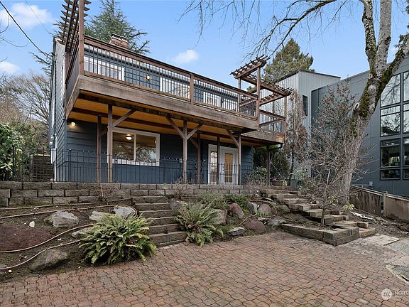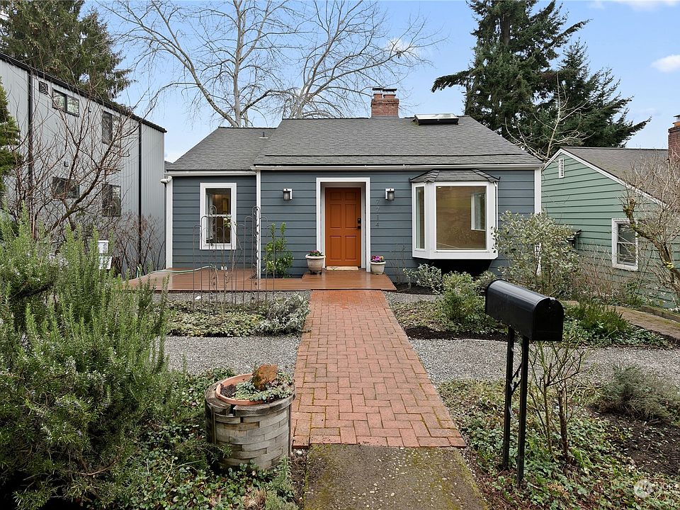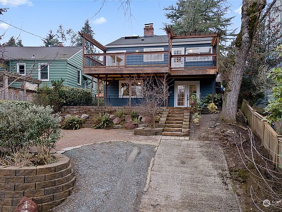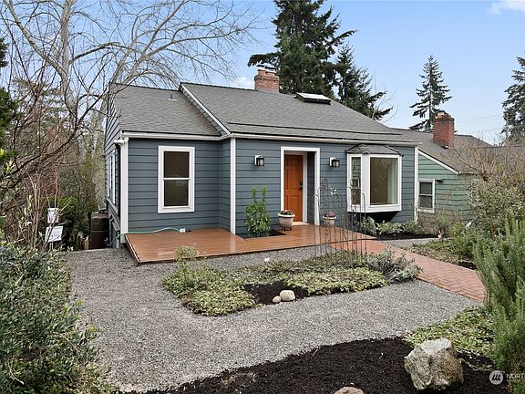 Charming 3-bedroom, 2.75-bath Ravenna home on a storybook lane. Main floor features a bright living room overlooking an edible garden, vaulted-ceiling kitchen and dining room, two bedrooms, a bath, and a laundry closet. A large deck offers a peekaboo of Mt. Rainier. Lower level boasts a full kitchenette, living room with gas fireplace, bath with 2nd laundry hookup, family room, and primary bedroom with ensuite. Cozy covered patio, convenient parking on the lower patio and ample off-street parking on this street-to-street lot. New electrical panel with arc protection, paint, flooring, and A/C. Prime lifestyle location near top-rated schools, restaurants, parks, University Village, Seattle Children’s Hospital, UW, and I-5.