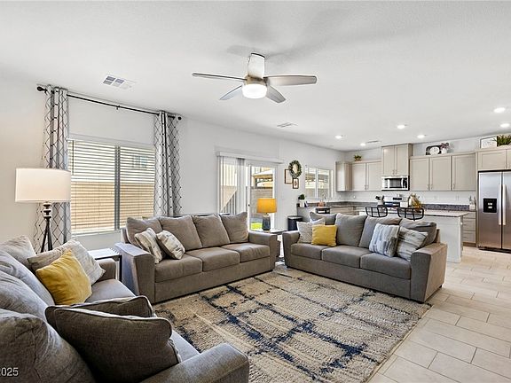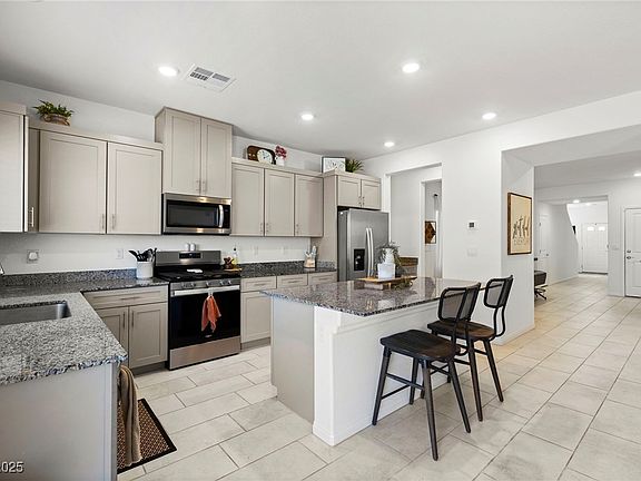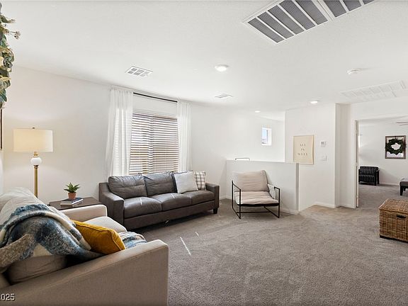 Beautifully maintained and nearly new DR Horton home located in a gated, highly sought-after community! This spacious 5-bedroom floor plan offers a full bedroom and bathroom on the first floor—perfect for guests, multi-gen living, or a private home office. Upstairs, enjoy a versatile loft space and generous room sizes throughout. This home is truly move-in ready! Enjoy mountain views, community walking trails, a private park, and easy access to Nellis AFB, with Creech AFB also within reach. Why wait to build? This stunning home is ready for you now!