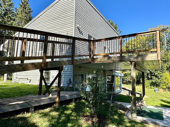 Water in all its glory allows one to experience a multitude of feelings. This home overlooking the Big Fork River has views from most all areas of the home. You will wake to the sunrise, sleep with the sun setting, the river as your canvas. Whether on the upper deck or lower patio, nature will not disappoint you with the types of wildlife that will grace your presence all year round. Enter on the ML, go to the LL custom Mai Knotty Elder kitchen, dining, LR. Up to the BR’s, bath, office. Cross the road, you will find acreage and a garage. The home is heated with 1 off peak storage heater, and is wired for a 2nd. Also a wood freestanding stove. Follow the trail down to the river, have a campfire, paddle the water. Many areas for a garden, fruit trees abound! Seller hauls water for the buried 1400 gallon cistern. On Demand water heater. Rural vacant land where garage is located. Riverfront easements exist. See Disclosures.