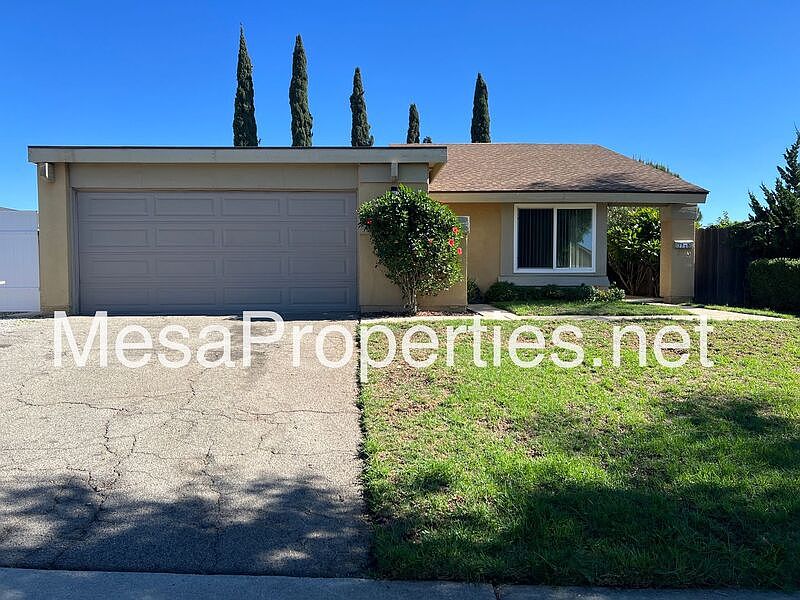 A sliding glass door leads from the kitchen to a patio and expansive fenced backyard, perfect for relaxing or entertaining. The attached two-car garage includes laundry hook-ups, with extra parking available along the driveway and street.