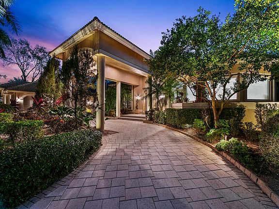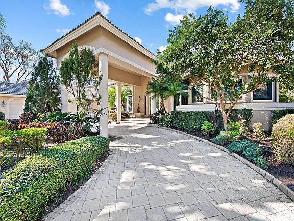 Stunning!!! Expanded Vanderbilt floor plan, with transitional Decor, featuring 5 Bedroom, 5.5 baths. plus, office and children's playroom. Split floor plan with each bedroom an ensuite. Grand entrance with porte-cochere, circular driveway and 3-Car side entry garage. Lush landscaping with total privacy. All updated bathrooms, high flat ceilings, and 8 ft doors. (NEW ROOF) currently being installed April 2024. All openings with hurricane protection. Screened patio, heated 20x40, saltwater pool and spa. Open kitchen with 2 sinks, center Island, stainless steel appliances with granite counter tops. Oversized master bedroom with sitting area, his and hers closets, house generator, with 500-gal gas tank, entire house water purifier system, summer kitchen with Tiki hut, and much more...