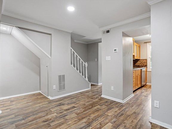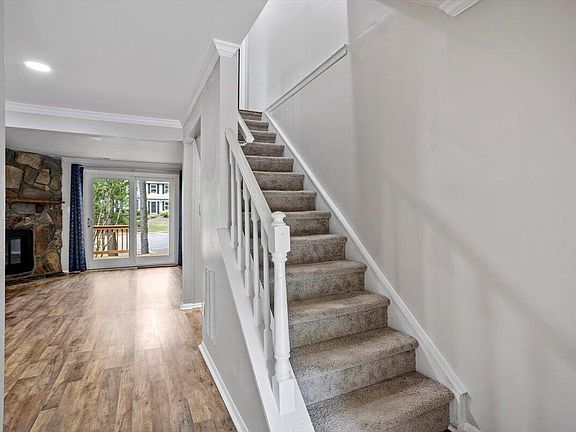 Welcome to this centrally located 2-bedroom, 1.5-bath townhome in the desirable Crown Oaks community. Featuring nearly 1,000 sq ft, this home shines with LVP flooring throughout (carpet on stairs), smooth ceilings, and a bright open living room highlighted by a cozy stone fireplace. The kitchen boasts newer stainless steel appliances (2022), complemented by a new sliding door (2024) leading to a freshly stained deck. Bathrooms have been completely refreshed—the powder room with a new toilet and vanity, and the full bath with a new vanity, shower, and toilet. Additional updates include a new front door, four replaced windows, and mechanical peace of mind with a new AC (2024. Enjoy a private deck perfect for entertaining along with the community amenities such as a pool, tennis courts, and common areas. Conveniently located near I-540, Six Forks Road, shopping, dining, and downtown Raleigh, this move-in ready home is a perfect blend of comfort, updates, and location!