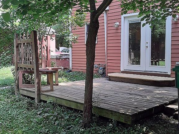 1930s Cape Cod with old hardwood floors in the dining and living rooms, and new floors upstairs and in the kitchen. The dining room opens onto the deck and kitchen. Each bedroom has huge walk-in closets. The large garage has extra room for a shop. This park-like setting is in a quiet, residential neighborhood (with sidewalks) in Pike Township, yet only 5 minutes from Trader Joe's, Aldi, Costco, local breweries, ethnic restaurants, plus all the chains, and 10 minutes to Eagle Creek Park, Broad Ripple, Holiday Park, and the Art Museum. If you love having quiet evenings on your deck, or fires with friends, you will feel at home here. We will be ready to show this house next week. Please email me if you want to arrange a time (almost any schedule can be accommodated). Come see it if you are an interested buyer or buyer's agent (I will pay your commission). Please do not text or call unless you do not have access to email. My phone drops many messages and I cannot assure you that I will receive your message. And please do not contact me if you are only trying to list this house (I already have one picked out if I decide to go that route) or if you are investor looking for a cheap, as-is house to flip or re-assign.