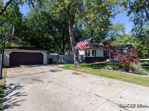 Welcome to 7715 Sandy Drive in desirable Georgetown Township. Much larger than it looks, its situated on almost a third acre corner lot. Walk in the front door to a very large living room with wood floor, big and bright front bay window and wood burning fireplace. Connected to the living room by french doors is a den/office with door to outside. Large kitchen in the rear with eating area. Off the kitchen is a good size porch/room with an exit to the back yard. 3 bedrooms and a full bath also on main floor. Lower level has 2 bedrooms, full bath, plenty of storage, laundry and a game room complete with pool table and wet bar. There is also a wood burning stove, perfect for entertaining and game nights. This property has a fenced in back yard and a detached 2 stall garage.