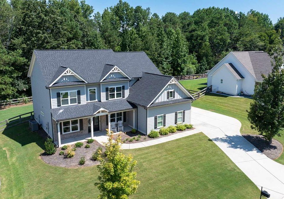 Practically brand new construction by Rivermont Homes (2022)! Welcome to this beautifully designed four-bedroom, three-bath home with three-car garage on over half an acre with a large, fenced backyard in Coopers Ridge. This beautifully maintained and well established Community has Resort style amenities featuring a pool with a slide and mushroom splash pad, clubhouse, and two lighted tennis courts / pickleball courts. Close to Lake Lanier, Minutes from GA 400, Conveniently Located to All Your Shopping Needs and Highly Sought After East Forsyth High School District. A covered front porch opens to a light-filled two-story foyer and open-concept living, perfect for entertaining. The family room greets you with a cozy fireplace and a wall of windows with serene backyard views. The new kitchen has shaker white cabinets, soft-close drawers/doors, stainless appliances, granite counters, a farmhouse sink, and a large pantry. The main level includes a guest bedroom with full bath, formal dining, and a flex room/office/den. Upstairs, the spacious primary suite has a tray ceiling, his and hers large walk-in closets, and a spa-like bath with dual vanities, soaking tub, and oversized shower. Two additional bedrooms both have large walk-in closets and share a Jack-and-Jill bath, and a loft offers flexible space for an office, craft room, playroom, or teen room. A dedicated laundry room adds convenience. The deep 3-car garage has built-ins for organization and additional storage. Enjoy a level backyard with a spacious patio, ideal for year-round relaxation and future additions. With low-maintenance exterior finishes, a security system, and access to top community amenities-this home truly has it all.