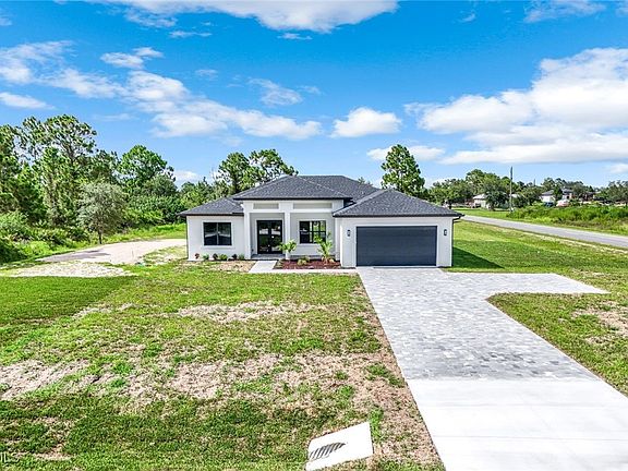 Quiet country living home sits on a spacious 1.25 acres corner lot in a quite place location! Home features 4 bedrooms, 3 full bathrooms, 2 cars garage with auto garage opener, doble entry glass door welcome you into a spacious floor plan with tray ceiling 10ft. Kitchen with luxury quartz countertops plenty of cabinets, island kitchen, Stainless steel appliances. Tile floors throughout the home. Master bedroom w/ walking-in closets, Mater bathroom w/ luxury countertop, walking shower and his and her sinks. 3 sliding glass doors in the living room lead to the open lanai. Laundry room w/ cabinets. The impact windows and doors ensure peace of mind, sprinkler system. The beautiful home provides an inviting space for family and friends to create lasting memories. Don’t miss out on this incredible gem. Near SR 80, SR 82, Joel Blvd, LaBelle, Southwest Florida Int’l Airport, FGUC University, Miramar Outlets, Topgolf Fort Myers, and more much to enjoy. Please call for your private showing.