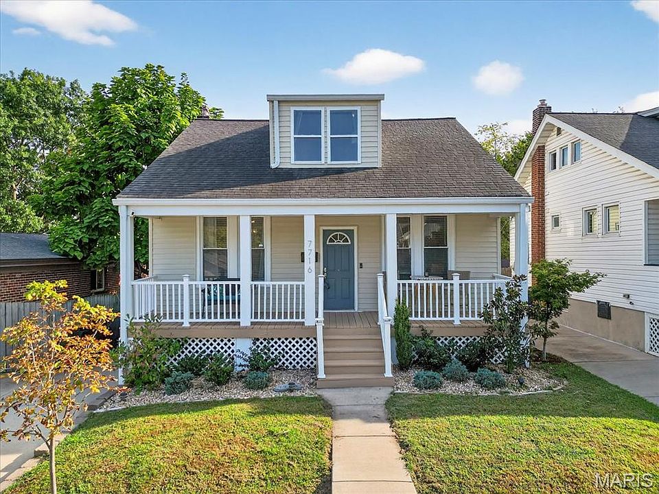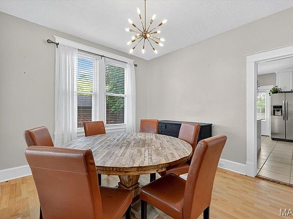 Charming 1.5-story bungalow on a lovely lot with a level backyard and hot tub! Enjoy the welcoming curb appeal and spacious covered front porch—perfect for relaxing outdoors. Step inside to soaring 9ft ceilings on the main floor, highlighted by distinctive millwork that adds warmth and character. The inviting living room with built-in shelving flows seamlessly into the dining area. The updated kitchen boasts crisp white cabinetry, marble countertops, a built-in buffet, a breakfast nook, and direct access to the spacious backyard. The main level also offers a generously sized bedroom and a stylishly updated full bath. Upstairs, you’ll find two additional bedrooms (one currently serving as a walk-in closet) plus a cozy sitting area or home office. The spotless basement provides abundant storage options. Situated in a wonderful neighborhood near three scenic parks, with quick access to Hwy 64/40, shopping, dining, and more!