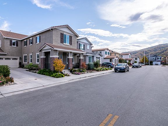 Huge price reduction: better than new & reduced $39k to $365/sf w/easy access to Santa Cruz and Monterey Coastline! Pvt gated comm. Walking trails galore & 1 min from Eagle Ridge GC, close to wineries, shopping, Gilroy Gardens, dog parks & playgrounds. Come live the good life here in this stunning model of high-end finishes. Laundry upstairs w/the BRs, garage outfitted w/comm grade shelving, ext landscaping that is simply opulent, & so much more. The kitchen/dining/family areas are in great room fashion & 9 foot ceilings throughout make this home especially attractive. Hunter Douglas coverings - family room is motor operated via remote control. High-end hardwood floors are stunning. This place rocks! The wall mounted, back-lit, look-a-like fireplace is mounted & remains w/the home, and the refer & washer/dryer are included in the sale. Rear situated garage allows for off-street parking & back door to yard. Dog run on side. Seller says, "bring all offers!" Bring your clubs.