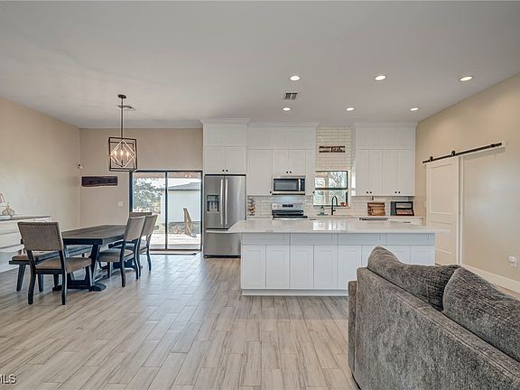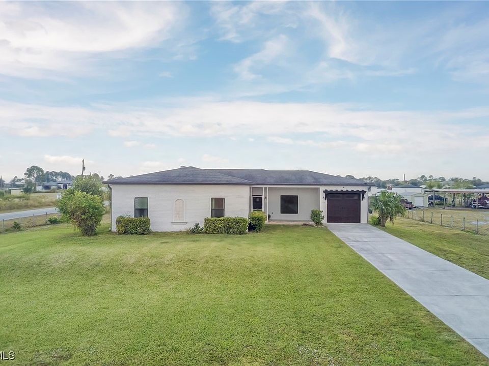 Discover this beautiful 1.25-acre property in a quiet area of LaBelle, featuring a spacious 4-bedroom, 2-bathroom home with an inviting open floor plan. The large kitchen is perfect for entertaining, complete with a generous island and plenty of counter space and accented by two charming barn doors that enhance the home’s country feel. Ceramic wood-plank tile flooring runs throughout, adding both style and durability. The primary suite offers a double-sink vanity and a walk-in shower. Practical updates include a roof and A/C unit that are only 6 years old. Outside, enjoy a fully fenced property with a yard irrigation system, a 1-car attached garage, a 30x40 detached 2-car garage, and a 30x30 carport—ideal for vehicles, storage, or hobbies. With no HOA, you’ll have the freedom to truly enjoy your space. This property blends comfort, functionality, and peaceful living—don’t miss the chance to make it yours!