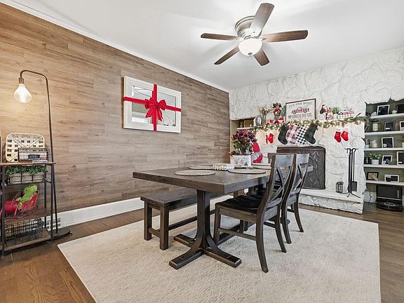 Move-in ready 3BR home featuring a main-floor bedroom and full bath. Enjoy an updated kitchen with all appliances included and new LVP flooring throughout. The dining room shines with a stone accent wall and natural fireplace, complemented by crown molding in both living and dining areas. Upstairs offers two bedrooms, a walk-in closet, and a full bath with jetted tub and walk-in shower. The finished basement provides a rec room and office/den for extra living space. Outside, relax on the patio in the fenced backyard. Includes a 2-car garage and screened in front porch.