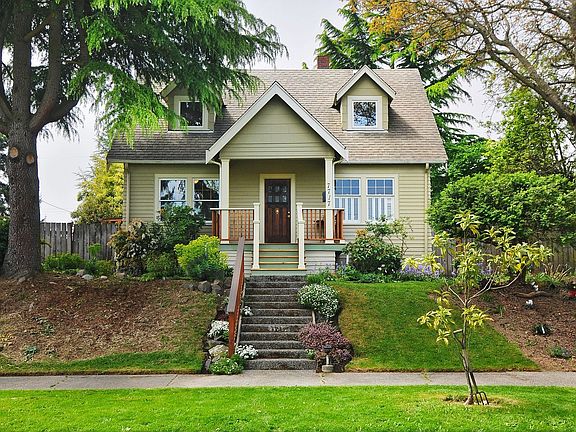 Historical Charm & Curb Appeal in this delightful Cape Cod home. Remodeled with a lovely mix of original style & modern amenities. Easterly views & excellent floor plan. Den with french doors off living room, roomy dining & updated kitchen, high ceiling partially finished basement great as guest bed/bath, art studio, MIL w/ separate entry. Large fully fenced backyard for fun, gardens & fire pit gatherings. Easy access to Seattle, W Seattle shopping, eateries. Walk to parks, schools, bus, shops.