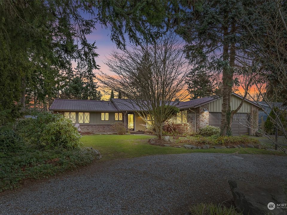 Classic 3-bedroom, 2-bath rambler on quiet street belies unique & special home. Remodeled kitchen with ample new counters open to dining room. Elegant living room with double French doors surrounding fireplace open to garden. Large bonus room (bedroom/entertainment room/deluxe office) w/ French doors to patio. Renovated bathrooms w/ new vanities, sinks, lighting, floors. Other features: oak hardwoods, updated plumbing, double paned windows, appliances, hwt 2022, laundry room w/ storage, metal roof, and double car garage. Oakbrook neighborhood, walking distance to schools. Close to golf club, Fort Steilacoom Park & minutes to Steilacoom but you’ll want to stay home & throw open the French doors to the lush garden & welcome the summer breeze!