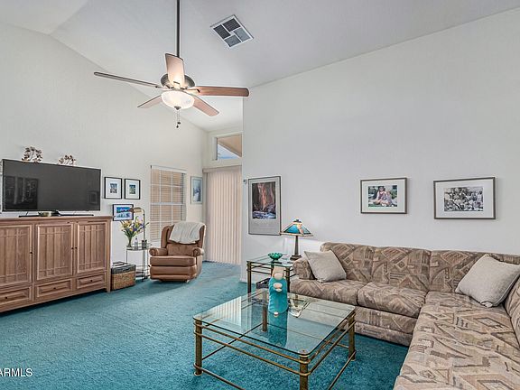 Welcome to this beautifully maintained 3-bedroom, 2-bathroom home located in the highly sought-after Arrowhead Ranch golf community. inside to find an open-concept kitchen and dining area perfect for entertaining, flowing seamlessly into a spacious living room with soaring vaulted ceilings that add to the bright, airy feel. The generously sized bedrooms feature walk-in closets, while the primary suite offers a private retreat. Additional highlights include an inside laundry room, built-in cabinets in the garage for extra storage, and a meticulously cared-for interior and exterior. Whether you're relaxing on the patio or enjoying the golf course, this home offers the lifestyle you've been looking for. Don't miss this opportunity!