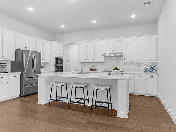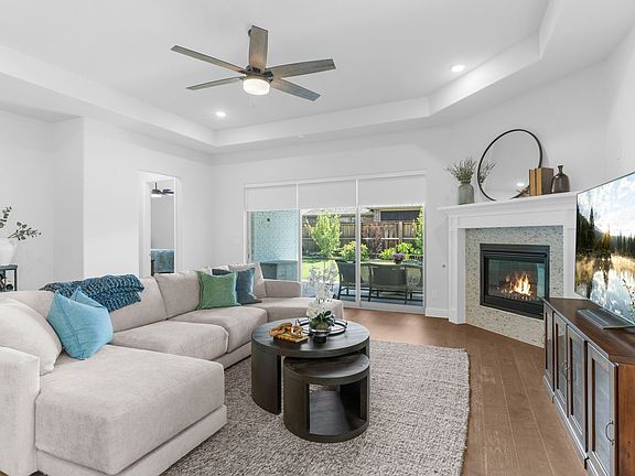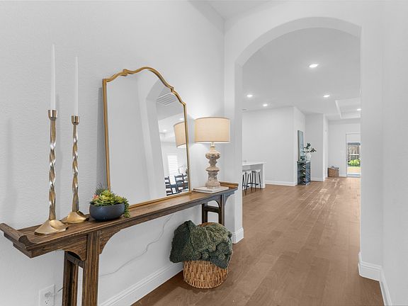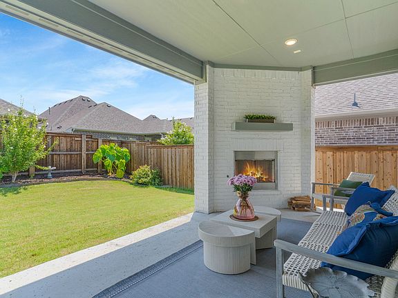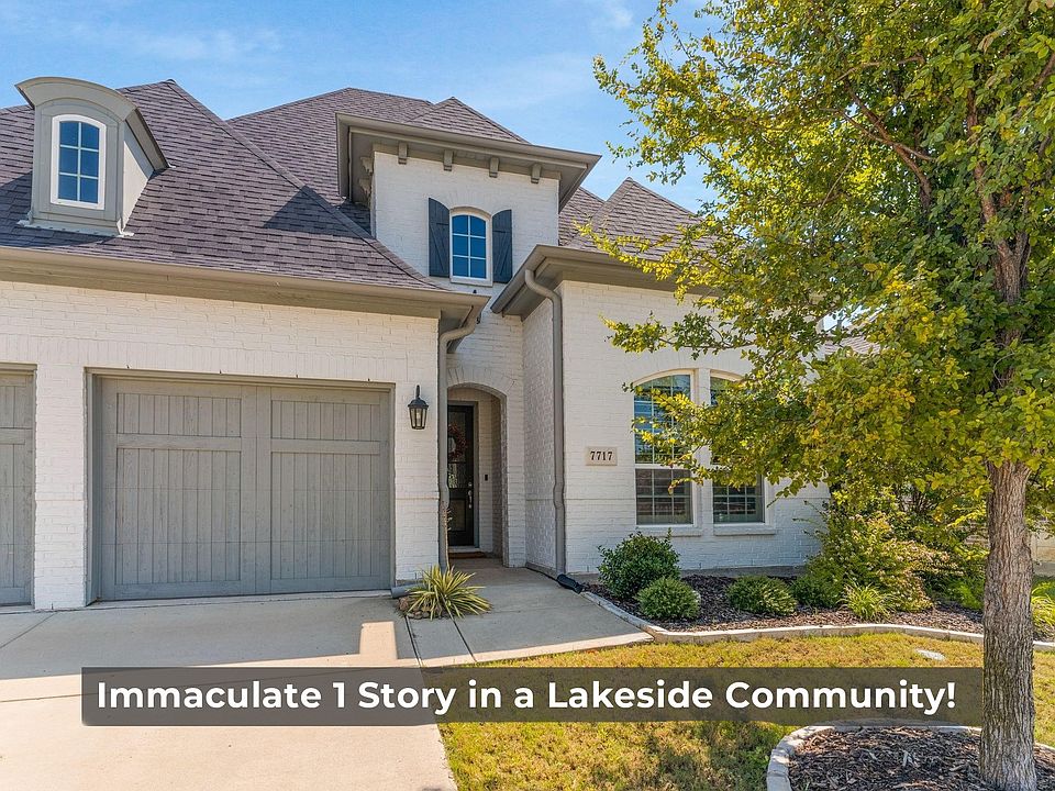 You'll want to live here!  A fabulous 1-story Taylor-Morrrison floorplan showcasing many upgrades & lots of natural light. Located in the exclusive section of Waterford Point at The Tribute, you'll appreciate the vast amount of beautiful hardwood floors, the big island kitchen, extra-large living-dining rooms, high ceilings & the split 3-bedroom plan that boasts an impressively large primary bedroom-bath. Neutral tones throughout ~ ready for your personal accents! More desirable upgrades include: panoramic stackable sliding doors in the living room bringing outdoor beauty in as it faces the backyard; plantation shutters throughout; decorator lighting & ceiling fans; gas log corner fireplace; stainless appliances featuring a gas cooktop + includes the French-style refrigerator; a spacious covered back patio with an outdoor fireplace & hearty Texas landscaping in front & back. Pickleball lovers will appreciate the neighborhood courts just down the street + Waterford Point residents have a dedicated resort-style pool with panoramic Lake Lewisville views, a fitness center & clubhouse. Tribute amenities for all residents: another impressive swimming pool, splash park, hike & bike trails, dog park, kayac launch, two award-winnning golf courses + dining. Coming in 2026: The Tribute Park & Lakeside Marina. Zoned to Little Elm ISD, including nearby Prestwick Elementary, a NISE STEM Certified Campus. Your very own suburban sanctuary!
