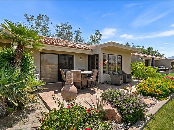 This inviting residence features an open and spacious floor plan designed for easy living and effortless entertaining. The condo overlooks the lush fairways of the 7th hole, creating a tranquil backdrop whether you’re enjoying morning coffee or evening cocktails on the north-facing patio. Inside, you’ll find tile flooring throughout, an upgraded kitchen and bathrooms, and energy-efficient vinyl windows and sliders. The attached two-car garage provides convenience and additional storage for golf clubs, bikes, or desert toys.