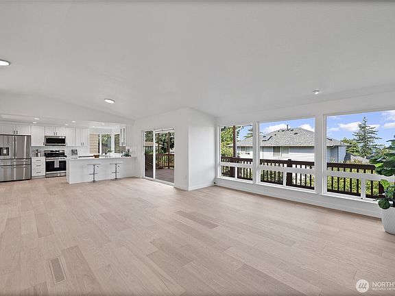 Transformational renovation in and out! Great room style accents this sun-bathed level-entry home features Sound, Olympic, Ferry, and Island views with incredible sunsets. Engineered laminate, vaulted ceilings, and fireplace highlight living and dining areas. The stunning white shaker kitchen has all new SS appliances and quartz counters. The primary bedroom has new remodeled bath with double vanity and shower. Lower level has 2 additional bedrooms/office,large family room, 3/4 bath. Updated plumbing,wiring,doors, paint and trim. Thousands in professional landscaping. Extensive rear deck.Single car garage + a detached 792 sf garage/shop.RV/Boat parking. Perfect condo alternative. Minutes away to schools, waterfront, train, & Harbour Point.