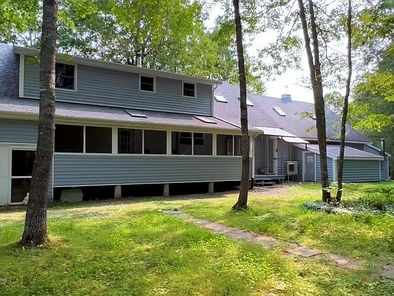 This charming Cape Cod-style home offers a perfect blend of character and functionality. Featuring 4 bedrooms and 2.5 baths, it is situated on a picturesque, park-like setting with access to a water feature pond, creating a serene and private environment. The home is customized with unique craftsmanship and attention to detail, providing a one-of-a-kind living experience. The large windows and skylights provide ample natural light inviting the warmth of the outside in, Inside, you'll find spacious formal living and dining areas, a main floor family room, and a large kitchen with a cozy breakfast nook—ideal for everyday living and entertaining. The property boasts ample storage and an oversized garage, enhancing convenience and practicality. The walk-out basement presents unlimited potential for additional living space or the possibility of an in-law suite, offering versatile options for your needs. The outdoor screened-in deck overlooks the tranquil backyard, perfect for relaxing or hosting gatherings. You’ll love having a fully functional workshop in addition to wired 2 sheds and chicken coop. The woodstove heats the 2 upper levels on just 4 cords of wood per winter and enjoy cool summer days thanks to the efficient heat pump system. The looping driveway and extra driveway by the pond allow ample space to park multiple cars and recreational vehicles. This home combines timeless charm with modern comforts, making it a truly exceptional place to live.