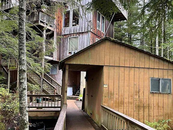 Four-plex near downtown Ketchikan. You feel like you are enjoying the best of nature surrounded by trees! The two-bedroom units are spacious with large living rooms. The other units consist of a large efficiency and a one-bedroom unit. Property includes basement storage/utility room. Storage shed is also part of the deal. This property has huge potential within the city limits. On-street parking only.