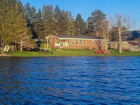 Discover the perfect lakeside retreat with this year round, single-floor mobile home, offering 120 feet of pristine lake frontage and stunning water views! Set far back from the road and not visible from it, this home provides a private and peaceful setting, accessed via a shared gravel drive. Inside, you'll find three comfortable bedrooms, two full bathrooms, and an eat-in kitchen with space for a dining table—ideal for cozy meals with a view. Step out onto the spacious back porch, perfect for grilling, relaxing, or entertaining while taking in the serene lake backdrop. Enjoy direct access to the water with a gently sloping shoreline, making it great for swimming, kayaking, or simply soaking in the beauty of the surroundings. If you're looking for a peaceful retreat, this lakeside gem offers charm, comfort, and unbeatable views in a secluded, natural setting. Close to the country club and local Long Lake golf course. Call today for more information and a private showing!