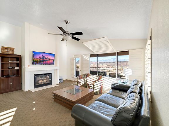 Enjoy breathtaking views of Snow Canyon, Southgate Golf Course, and Zion! All from this stunning Legacy home! It boasts two spacious master bedrooms-one on the main level and one on the lower level. Along with two family rooms and two expansive covered patios. Brand new plumbing throughout! This beautifully designed property features elegant wood plantation shutters throughout, a storage room in the garage, and ample cabinetry in the laundry room. epoxied back patio The garage floor is epoxy coated and has an independent heating and air conditioning system. All of the furniture, furnishings, and fully equipped kitchen are negotiable for a move-in ready option. Just bring your suitcase. Nestled in an established community, this home also offers excellent HOA amenities with two swimming pools, pickleball and tennis courts, exercise room, large meeting room with kitchen for parties, game room, and special parking accommodations for motor homes.