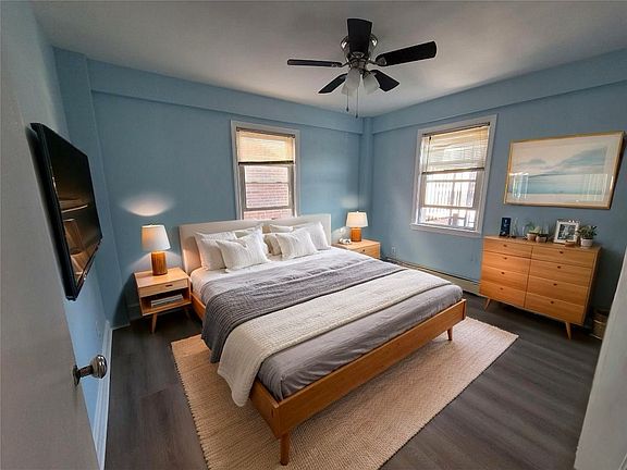 Bright 2nd-floor apartment in owner-occupied two-family home. 2 large bedrooms (fit king and queen beds) with ceiling fans, 1 bath, living room, eat-in kitchen, deep closets, and plenty of natural light. Hot water included; tenant pays gas/electric. No pets. Quiet street with ample parking. Bus #40 one block away, 13 min drive to Harrison PATH Station. Close to shopping, houses of worship, and NYC. Application require, ID, credit check, proof of income, interview. 1.5 months security deposit, and broker fee required.