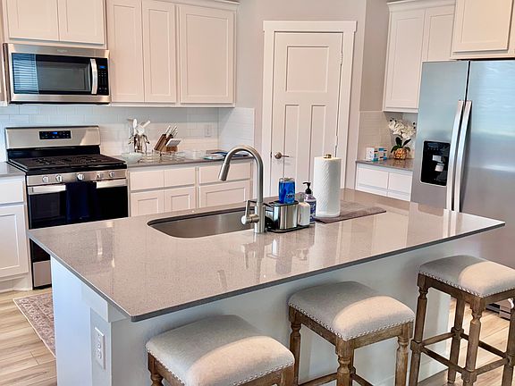Master bedroom on the first floor with oversize shower and walk-in closet. Washer and dryer located on the first floor. Two bedrooms on the second floor with a full bathroom and 2 closets. Separate thermostats for first and second floors. Video doorbell, Amazon Echo, fridge, oven, microwave, stove, dishwasher, washer, dryer and two car garage. This house just minutes from restaurants, grocery, hospital, coffee shop, Tower Point shopping center, schools and park.