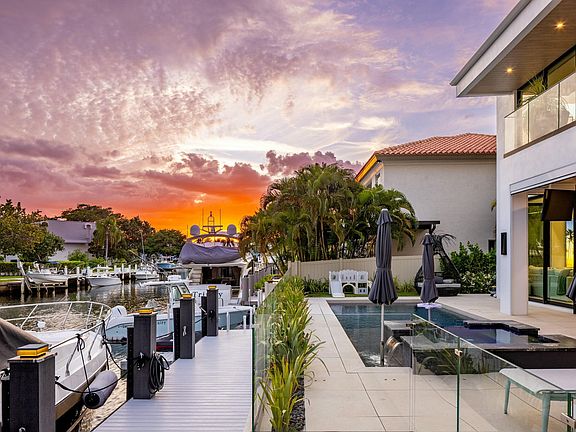 Villa Mariner, nestled along the tranquil shores of a wide, deep-water, canal just off the Intracoastal Waterway, 772 Glouchester Street in Boca Raton is a true masterpiece of contemporary design. Completed in April 2024, this two-story residence blends world-class amenities with sophisticated architecture, offering a luxurious waterfront sanctuary where elegance meets innovation. Spanning 6,870 square feet, this estate features 5 bedrooms and 6 bathrooms, seamlessly integrating modern sophistication with cutting-edge smart home technology. A grand 23-foot atrium entry introduces a light-filled living space, where floor-to-ceiling windows frame stunning water views. A 500-bottle, climate-controlled wine cellar, integrated into the atrium, is a striking feature, elevating the home's appeal. Custom European solid-wood cabinetry, a Control 4 automation system, and a chef's kitchen with Wolf, SubZero, and Cove appliances further enhance the estate. A wet bar with dual beverage refrigerators and a wine fridge adds to the entertainment value.