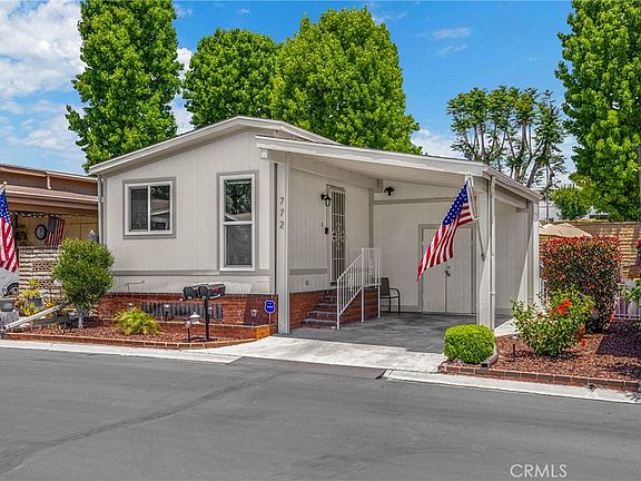 Welcome to beautiful Lake Park Brea, a Senior 55+ Community! This charming and spacious 1-bedroom, 1-bathroom home invites you in. The kitchen is light and bright with plenty of cabinet space. The spacious living room features vaulted ceilings and opens to a large private outdoor patio, perfect for entertaining, relaxing, and enjoying the beautiful California weather. The large bedroom includes a wardrobe closet with mirrored doors and an attached bathroom with a walk-in shower. With a NEW ROOF, Newer exterior paint, and Newer windows, this home is move in ready! Extras include a storage shed, and additional built-in storage in the carport. Conveniently located near, shopping, dining, Brea Mall, parks, and easy freeway access.