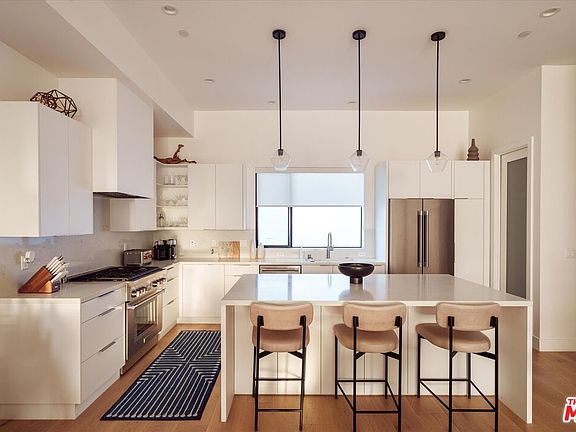 Presenting a stunning 2023 new construction architectural in the heart of Silver Lake. This 2,247sf home features a fabulous kitchen with oversized island, white quartz counters, walk-in pantry, and Thermador appliance package. The expansive kitchen, dining and living room level with balcony and 11' ceilings connects to the roof top deck upstairs. This large outdoor area features beautiful decking, inset lighting, and is pre-plumbed for an outdoor kitchen, setting the stage for luxurious daily living or large scale entertaining with family and friends. Enjoy incredibly rare, panoramic views of the city skyline, Hollywood sign, and hillsides beyond. Live large in the spacious Primary suite, well-appointed with wraparound balcony, chic bath with dual sink vanity, and custom walk-in by California Closets. This level is complete with large guest bedroom suite and a lovely petite garden with turf and sitting area. The first level of the home features a third bedroom suite, laundry room with built-ins, and direct entry garage. Custom solar shades and floor-to-ceiling drapery add a level of elegance throughout. Fully equipped smart home features include dual-zoned HVAC with Nest thermostats, alarm system, keyless entry, EV charging station, and Google Nest doorbells and cameras. A well-appointed, turnkey home, minutes from Silver Lake's Sunset Junction, Erewhon Market, and trendy Virgil Village. Explore the great outdoors at Bellevue Park, Silver Lake Reservoir, or the trails of Griffith Park. Shop local at the weekly Farmer's Market, and enjoy some of the best restaurants, cafes, and retail in LA, moments from your front door!