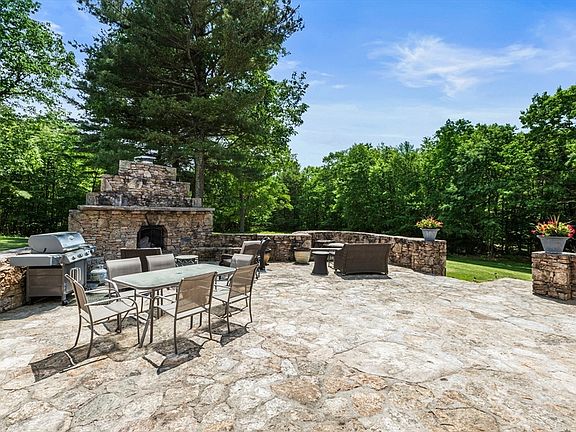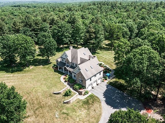 This custom designed colonial offers unparalleled quality & exhibits exquisite architectural details throughout. Perfectly balanced elegance & comfort, surrounded by privacy on 5.7 wooded acres w/ unbelievable hardscaping direct from the land. Gourmet kitchen offers custom cabinets, walk-in pantry, granite counters & huge center island open to cathedral ceiling, sun filled living rm with impressive fieldstone fireplace. Every room offers views & natural light from every window. First floor primary suite has tray ceiling, 2 walk-in closets, and spa like bath providing a private retreat. 2nd floor is a teen suite dream with bedrooms having walk-in closets & built in desk areas, 9' ceilings, entertainment sized media room & dedicated laundry. 1st floor has full legal in-law with separate entry, 10' ceilings, Brazilian Koa hardwoods in kitchen, dining rm, foyer & home office. Lower level game room with custom built-ins & wood stove. Third floor walk-up for further expansion. Welcome Home!