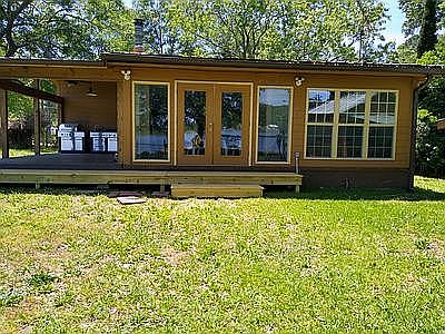 Cabin on 65 acre lake. Inside has the cottage charm with an open floor plan. Wonderful view of lake! New central heating and air unit.The side porch has a covered roof and ceiling fan. The storage building has ample room for lawn equipment. A boat storage has been added to bring in your fishing boat (for those very few months in GA that we don't FISH).