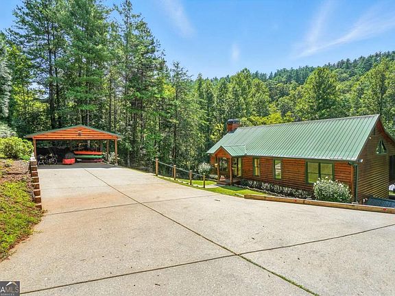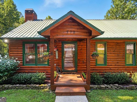 Charming Rustic Cabin Retreat on Stekoa Creek Welcome to this beautiful 4-bedroom, 2.5-bath cabin that perfectly blends rustic character with modern comforts on 2+/- acres. Nestled alongside Stekoa Creek and Smith Branch, this property offers serene water views, a mostly level yard, and a fenced garden space for those who love the outdoors. Step inside to soaring ceilings and a stunning floor-to-ceiling masonry stone fireplace that anchors the light-filled living room. The open layout features wood finishes throughout and pine hardwood floors throughout the main living areas, with cozy carpet and laminate flooring in the lower level bedrooms. A sunroom/screened porch with a swing and dining space, plus a screened porch, invite year-round enjoyment, while the covered lower deck with hot tub provides the perfect spot to relax and unwind. The main-level owner's suite is a true retreat, complete with double vanities, soaking tub, separate tiled shower, and his-and-her closets and access to the upper level porch. Downstairs, you'll find two additional bedrooms, a full bath, and plenty of extra storage. Outside, a 1-car detached garage, 2-car carport, covered storage shed, and beautifully landscaped grounds add both charm and practicality. Whether you're looking for a full-time residence or a mountain getaway, this cabin offers the perfect combination of rustic style, comfort, and convenience.