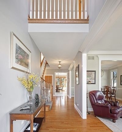 Top local builder did an amazing job on this all brick, one owner, 2004 built, custom home. Gently used & updates added! Lots of natural light in this 3600 sq ft + finished basement. Todays Modern open floor plan. 4 Beds & 3 baths on the 2nd floor + a 2nd floor loft/flex room that could be made into a 5th bedroom. Primary suite with hardwoods, walk-in closets & marble counter tops in the luxury bathroom. 4.5 baths total. Quartz countertops in the laundry & 2 secondary 2nd floor baths. The first floor has hardwoods floors, formal living & dining rooms, office (or 5th bedroom), full bath, laundry/mud room, a oversized family room with fireplace and a Kitchen with new & newer stainless appliances (new kitchenaid refrigerator not reflected in pictures), Quartz countertop & separate breakfast room. Not your typical layout. Finished basement with bathroom, recreation room, exercise & lots of storage, Expanded paver patio. in the yard & lost of green space. Front paver Patio. Professional landscape in bloom. Newer lighting is on trend. spacious 2 car garage 50 x 140 lot. Close to Visitation, parks, shopping, school, prairie path & more. Seller will sell the adjacent vacant lot (50X140) separately.