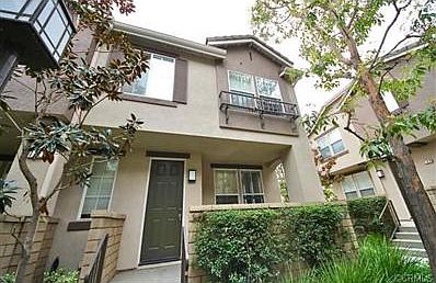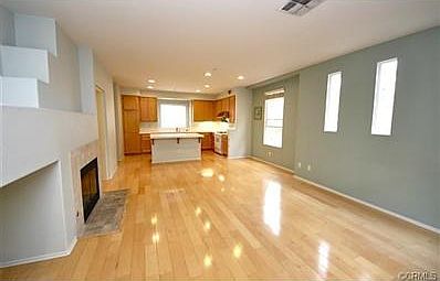 One of the largest models in Berkeley of Brea! This desired end-unit features a covered front porch made more private with a block wall. Gorgeous hard wood flooring on main floor and laminate wood flooring upstairs and staircases! Huge living room offers a fireplace & media niche with ledges for your display items & artwork! The living space is open to the kitchen which offers a wide center island breakfast bar, dishwasher & stove/oven. Also on the main level is a guest bathroom with pedestal sink. 3 bedrooms are upstairs, including the spacious master bedroom with a vaulted ceiling. Enjoy an awesome walk-in closet with built-in racks, dual sinks & a peek-a-boo view of the hills from the master bathroom. Pet-friendly! Bring up to 2 pets to this condo. Enjoy the community pool area with shower & restroom facilities. There is also a BBQ patio & lot, plus tons of guest parking! Located nearby shops, restaurants, transportation, parks, schools & more! One of the best condos to rent! Come and take a closer look!